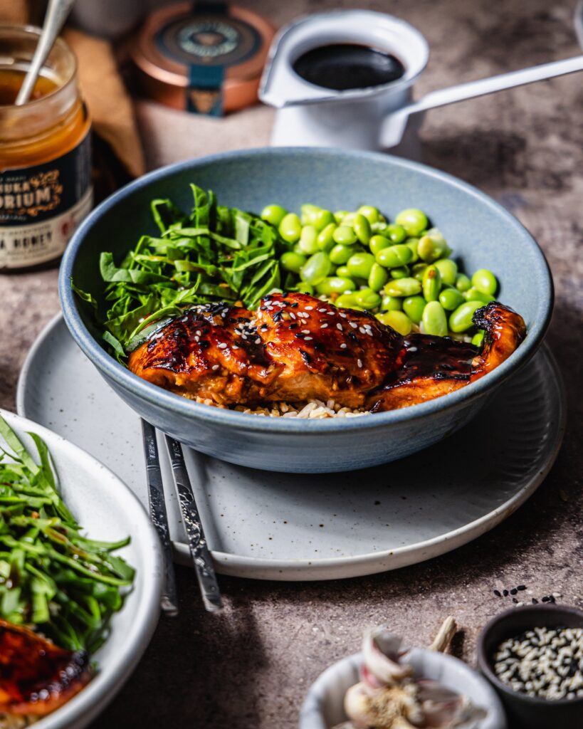 Cơm bát cá hồi Teriyaki mật ong Manuka
